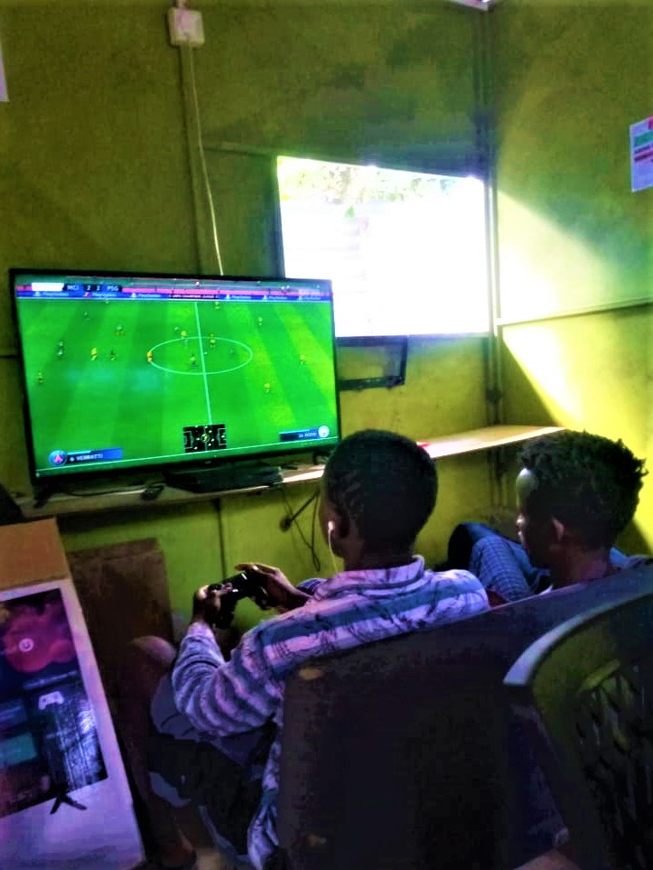 A business he did for quite a while until he was able to start a small cyber business in the school premise then later decided to look for a location outside the school.